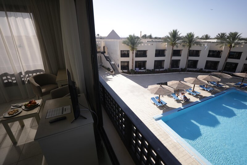 Das Resorthotel mit seinen 362 Zimmern, verteilt auf 2 oder 3 Etagen in 12 Gebäuden, hat eine 24h-Rezeption, eine Lobby mit Bar, einen Lift (im Hauptgebäude), eine Klimaanlage,