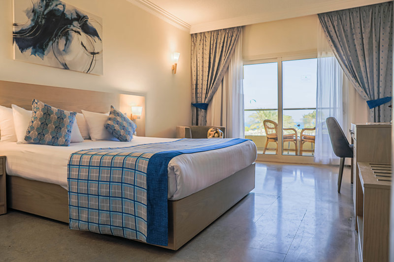 Die hellen und komfortablen Doppelzimmer mit Gartenblick (DZG/EZG/TZG), Poolblick (DPZ/EPZ/TPZ) oder Meerblick (DZM/EZM/TZM) sind mit Bad (Dusche), WC, Föhn, Safe, Klimaanlage, Telefon, Sat.TV, Minibar, Balkon oder Terrasse ausgestattet. Es gibt eine geringe Anzahl an Sparzimmern (DZP/EZP). Wahlweise sind auch Superiorzimmer mit Poolblick buchbar (DSP/ESP/TSP). Bei Belegung der Standard- oder Superiorzimmer mit 2+2 wird 1 Zustellbett bereitgestellt. Das 2. Kind schläft im Bett der Eltern. Für 2 Erwachsene + 2 Kinder oder 3 Erwachsene + 1 Kind eignen sich Familienzimmer mit Zustellbetten mit Poolblick (F2P/F3P) oder Meerblick (FZM/F3M).