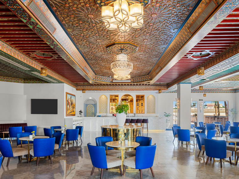 Великий готельний комплекс складається з головної будівлі та додаткових будівель, у яких розміщено 621 номер. Розкішна зона реєстрації включає вестибюль та безкоштовний Wi-Fi у зонах загального користування. зони, а також номери, торгова галерея та перукарня. Доповнюють пропозицію 6 ресторанів (включаючи середземноморський, східний та азійський), різні бари, кафе та східний паб. Простора відкрита зона має зону басейну, схожу на лагуну, з різними басейнами (один з яких підігрівається) та окремий дитячий басейн з гірками (одна з яких підігрівається). Шезлонги, пляжні рушники та парасольки доступні безкоштовно на сонячних терасах та на пляжі.