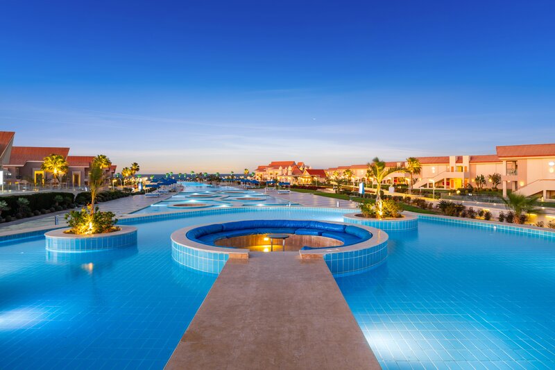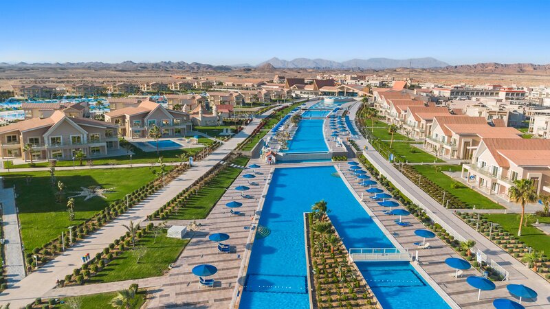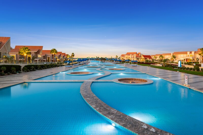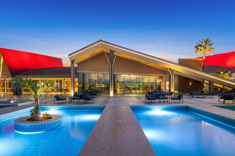 Die im Sommer 2018 eröffnete, moderne Ferienanlage verfügt über 950 Wohneinheiten, die sich auf zahlreiche Villen im Bungalowstil aufteilen. Zu den Annehmlichkeiten gehören eine großzügige Empfangshalle mit Rezeption und Lounge, 4 Buffetrestaurants (italienische, orientalische, chinesische & deutsche Küche), 10 Bars und ein Shisha Corner, Spa-Bereich auf 1.082 m² mit Friseur und mehrere Geschäfte. Für die abendliche Unterhaltung gibt es eine Diskothek. In der großzügig gestalteten und gepflegten Außenanlage befindet sich die aufwendige Poollandschaft mit 25 Pools (3 Erwachsenen und 1 Kinderpools sind im Winter beheizt) und Sonnenterrassen mit Poolbar. Am Pool und Strand sind Liegen und Sonnenschirme, Badetücher je nach Verfügbarkeit kostenlos zu erhalten. WLAN in der Anlage kostenlos verfügbar.