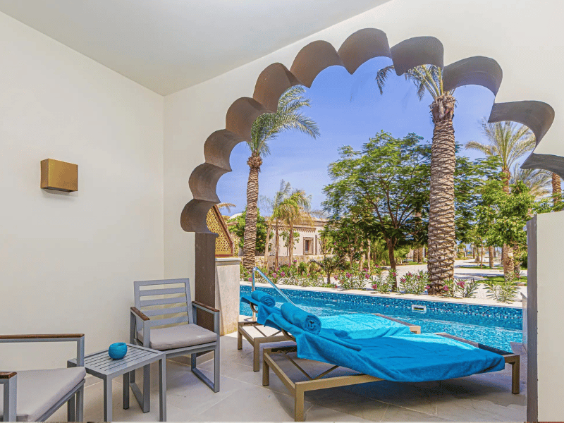 Розташований безпосередньо на приватному білому пляжі з виходом до кришталево чистих вод Червоного моря, курорт пропонує ідеальне поєднання спокою та ексклюзивної атмосфери. Дослідіть чарівне старе місто Сахл-Хашіш або прогуляйтеся 12-кілометровою пляжною набережною.